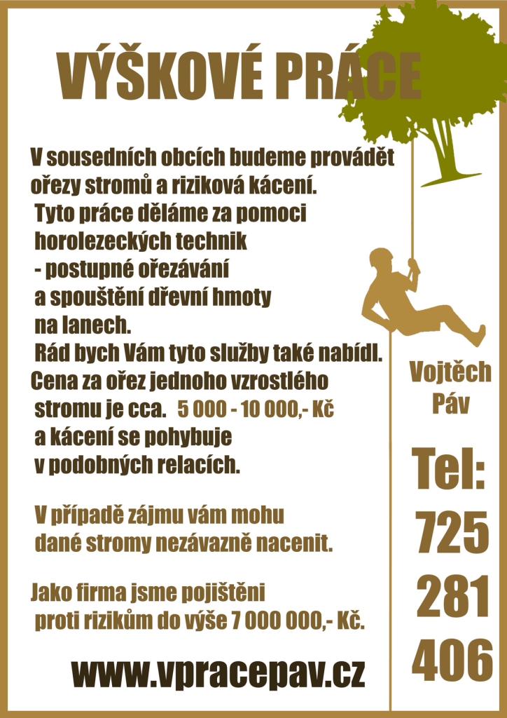 Nabízíme ořezy stromů a riziková kácení. Tel. č. 725 281 406